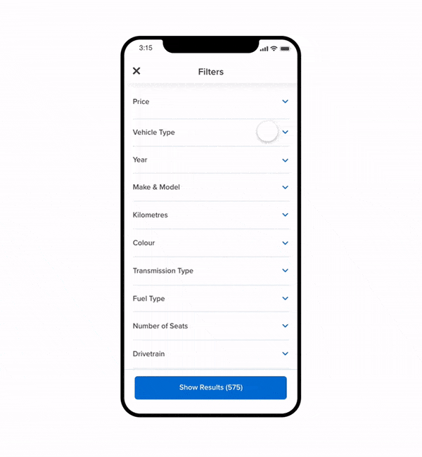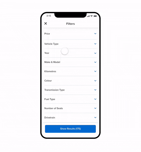 For example, if the user applies a black colour filter, only other filters with black cars in that category will appear (the rest will be hidden). Numbers beside each filter also help customers see how many search results they can expect.